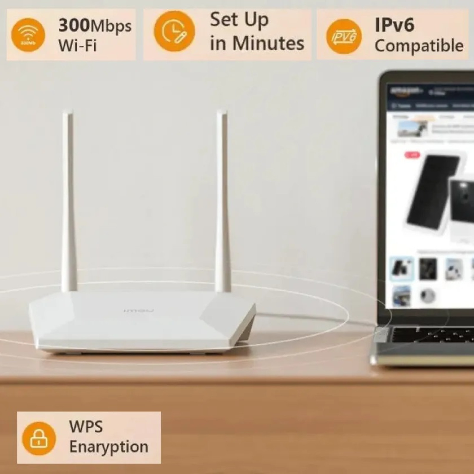 Imou HR320 N300 Wi-Fi Router ქარაველიზე = სწრაფი, სტაბილური, უსაფრთხო ინტერნეტი სახლში ან ოფისში, ყველა მოწყობილობისთვის ერთდროულად.