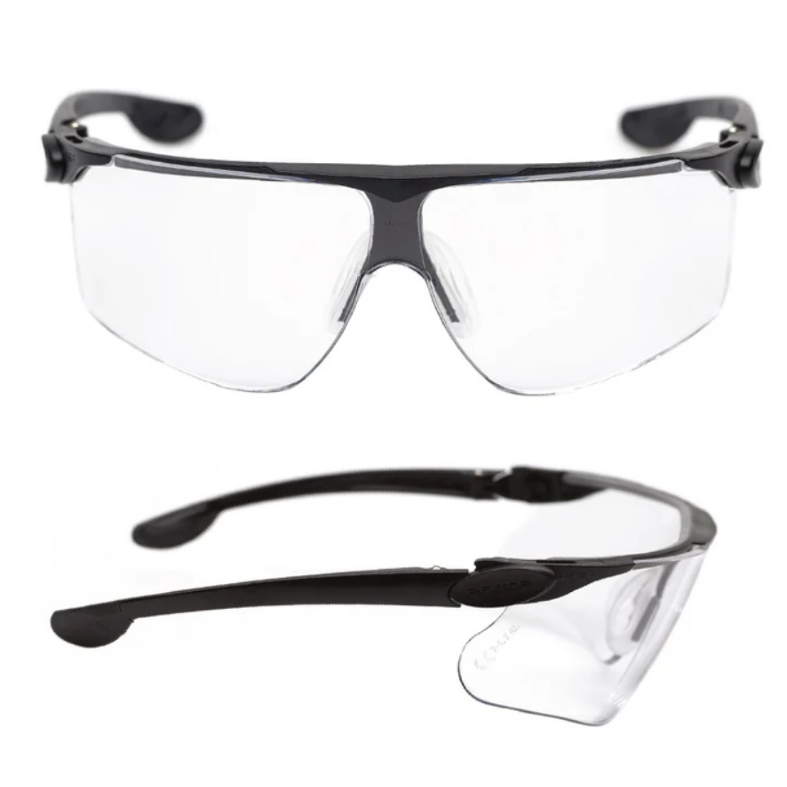 · დამცავი სათვალე 180° ასფერული ლინზებით — მკაფიო ხედვისა და სრული ვიზუალური დაფარვისთვის.